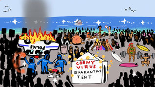 Drew Toonz poster design for the 12th and final 2020 Volcom Pipe Pro Surf Competition featuring highlights of the broadcast from years past